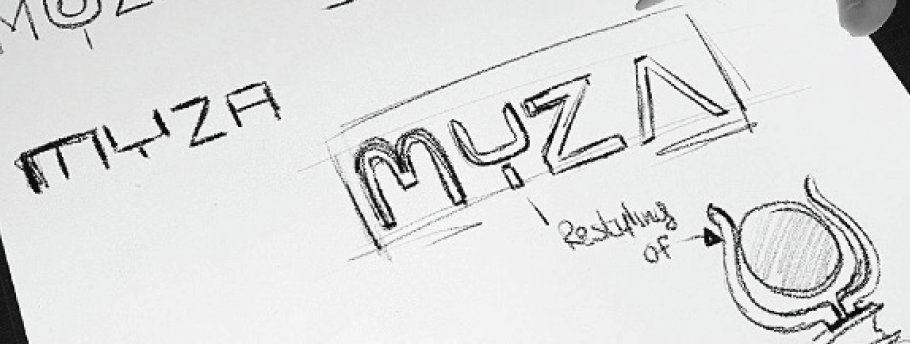 il Myza Club è un luxury narghilè club di Torino, l’idea e l’obiettivo del brief iniziale era quello di differenziarlo dagli altri locali simili della città, utilizzando una comunicazione più elegante. All’epoca, il proprietario voleva comunque mantenere dei riferimenti alla cultura egiziana e aveva il desiderio di utilizzare la dea egizia Iside per la creazione del logotipo. Per mantenere una certa chiarezza e non cadere in un design troppo pacchiano, scelsi una tipografia che potesse ricordare vagamente quella dei geroglifici.